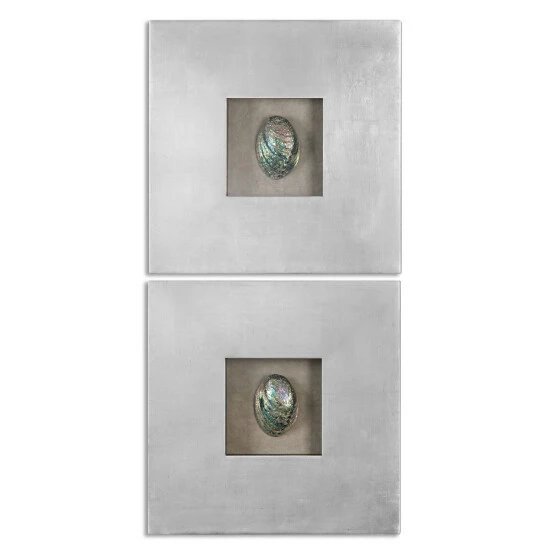 Add a touch of the ocean into your home decor with these beautifulsilver leaf shadowboxed abalone shells. These tiles are great foranyone looking to add a light touch of color into their livingarea.