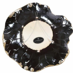 A trio of ceramic flowers with detailed veining, glazed in forest green with brown edges. May be hung on wall or used as tabletop accessory.
