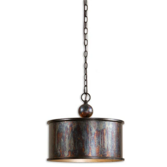 Infuse your decor with rustic charm when you hang this stunning pendant light fixture. Featuring an eye-catching oxidized bronze finish and a cylindrical lampshade, this one-light metal pendant light offers soft illumination for your space. An included seven-foot chain makes it easy to hang this fixture from ceilings of varying heights.