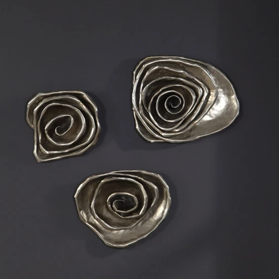 These artful spirals of organically shaped hand forged iron offer endless display options, hand finished in a metallic antique gold.