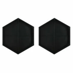 This set of two hexagon mirrors are encased in thick iron bands finished in a soft matte black. each mirror has a 1″ bevel and may be hung horizontal or vertical.