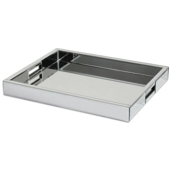 Serve up some festive feasts and glamorous treats on this polished silver tray. This decorative and functional tray is constructed of multiple mirrors with polished edges for a smooth finish. Guests will love the appetizers and snacks displayed on this gleaming tray.