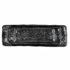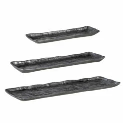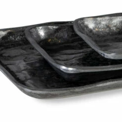 Set of three cast aluminium trays displays edges with a heavily textured antique nickel finish.