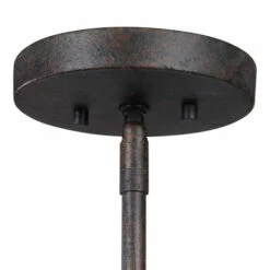 Heavy gauge real wood block body, finished in a mid tone, featuring clear seeded glass shade. A nod to industrial design is found in the iron wrapped frame. The metal work is in a deep weathered bronze finish with a slight texture and black antiquing. With 1-60 watt max Edison socket, includes 1-60 watt clear BT58 bulb. Supplied with 15 feet wire, and 3-12 inches stems and 1-6 inches stem for adjustable installation.