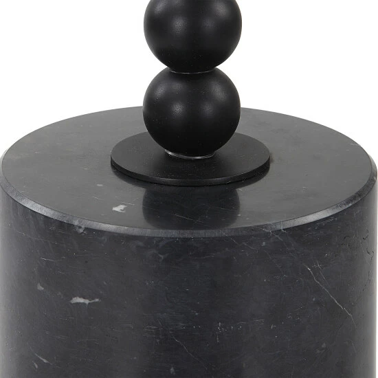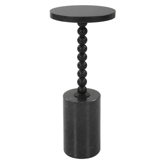 The little black table, perfect for every occasion! Our bead drink table is made from solid black marble with natural white veining, separated by satin black iron beaded details. Because of the natural characteristics of marble, each piece will have unique veining patterns.