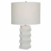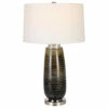 - Large modified round drum lampshade diffuses light beautifully