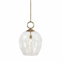 Simple elegance best describes the extra-large clear blown glass on this transitional pendant. Calix features an aged brass metal finish which has an ombre effect giving a deeper hue of antique darkening to some areas and brightening on others. The large circle accent above the glass adds a bold graphic element.