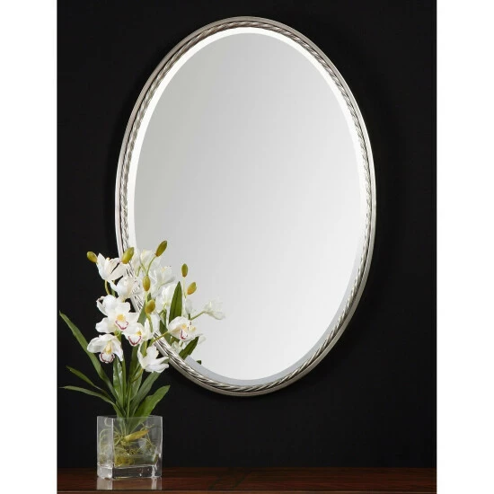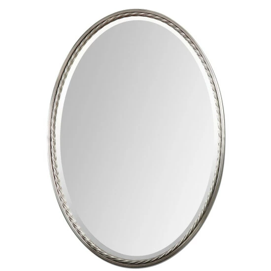 Complete your living room or bedroom decor with this beautiful wall mirror. This mirror features a metal frame with a twisted rope texture and brushed nickel finish for a classy, elegant touch. This mirror arrives ready to hang vertically or horizontally.