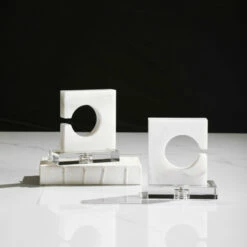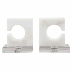 These contemporary bookends feature clean, white and grey marble motifs with elegant crystal details.