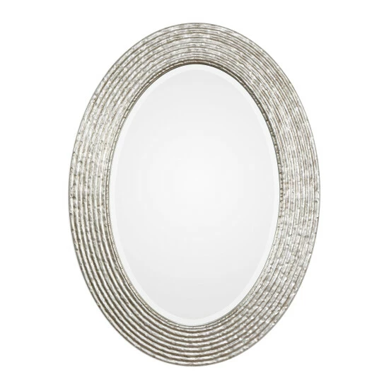 Brighten the wall over your dresser or a console table with this classic oval mirror. Crafted with a silver-finish MDF frame with a lightly hammered reed texture, this elegant wall-mountable mirror can be hung horizontally or vertically depending on your needs, and it also makes a gorgeous backdrop for a fresh green plant.