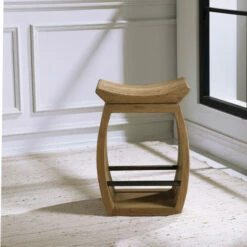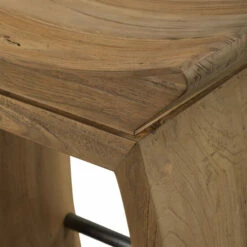 Built of 100 percent reclaimed elm wood, featuring an eye-catching scooped seat with a metal footrest in dark steel. Each piece is complete with rich graining, distress marks and shading, showcasing the unique history of each board. Solid wood will continue to move with temperature and humidity changes, which can result in small cracks and uneven surfaces, adding to its authenticity and character.