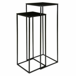 Functional nesting pedestals constructed in an aged black iron, featuring a textured cast aluminum slab top finished in a plated antique bronze.