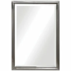 Versatile in design, this vanity mirror displays a simple rectangular shape. The mirror is finished in brushed silver and has a framed accent that adds dimensional interest.