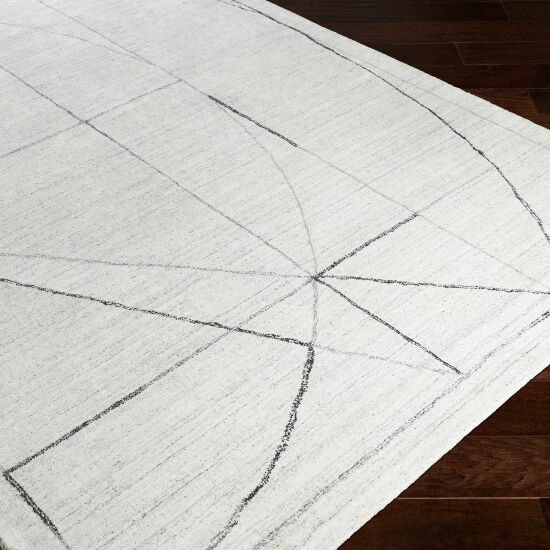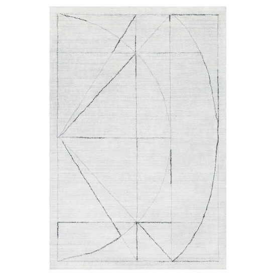 Hand knotted viscose in a medium cut pile with lustrous white and charcoal tones, featuring a contemporary design in contrasting black.