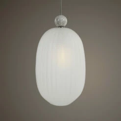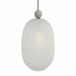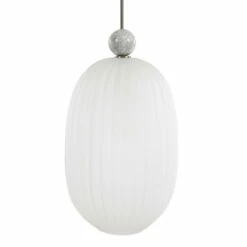 Grand oversized elongated 1-light pendant with a generously proportioned etched melon glass shade featuring a substantial white marble accent and a refined brushed nickel finish. With 1-100 watt max, Edison socket and includes 15 feet wire, 3-12 inches stems and 1-6 inches stem for adjustable installation.