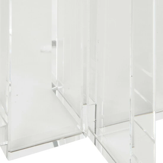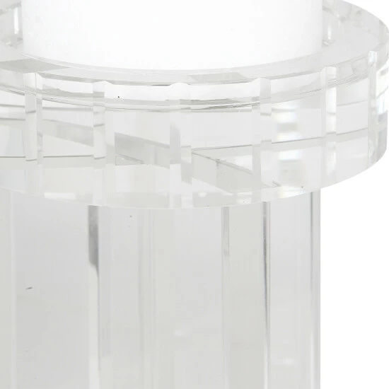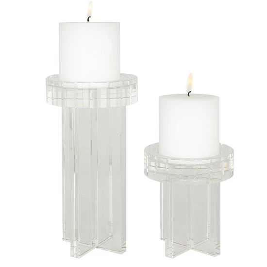This elegant set of candleholders is created from solid pieces of crystal with delicate carved details. Two 3″ x 3″ white candles are included. Sizes: S-4x5x4, L-4x9x4