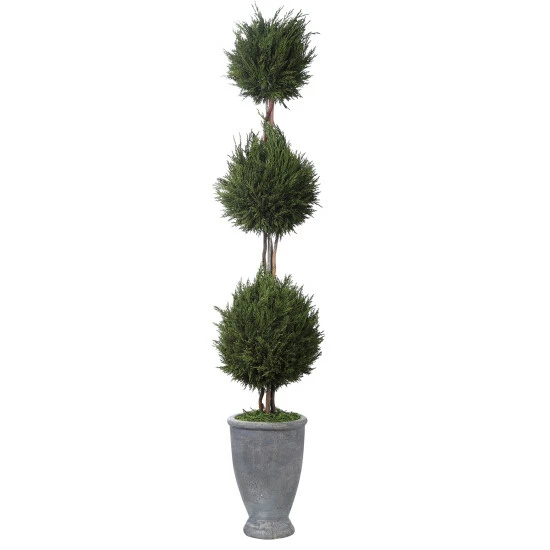 - Set includes: One (1) cypress triple topiary