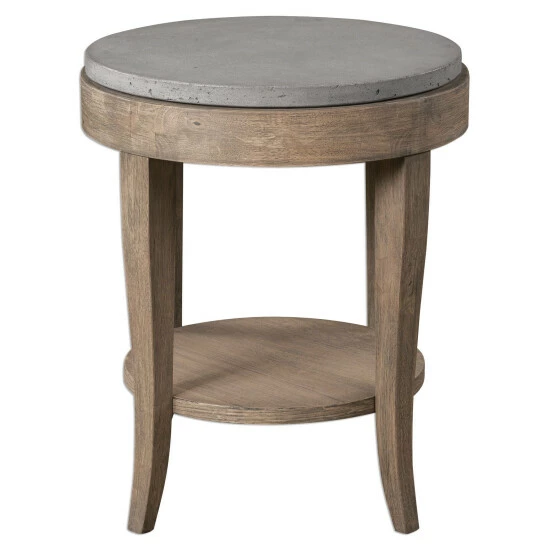 This Deka accent table is finished in brown glazed natural birch wood, with a solid poured concrete top. Durable indoors and out, this table will work well anywhere in your home.