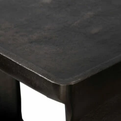 Taking inspiration from industrial style, this cast aluminum accent table features a masculine look with a tray style top in a dark antique nickel finish. The open center allows for extra display space.
