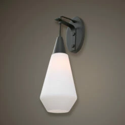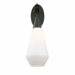 Classic black 1 light sconce features rich opal etched glass with a hint of mid-century design giving us this fresh looking pendant, 1-60 watt max Edison socket.