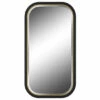 Bask in the brightening, reflective design of this beveled mirror when you check your look. A silvertone wooden frame protects the edges of this mirror while blending into it for a smooth transition, and etched detailing lends your space toward a glamorous, contemporary look.