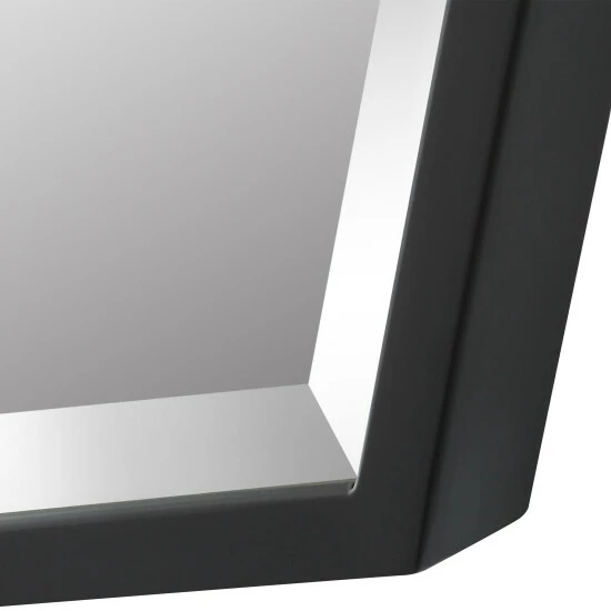 The facet mirror showcases an octagonal shaped iron frame finished in a sleek satin black. Mirror features a generous 1 1/4″ bevel. May be hung horizontal or vertical.