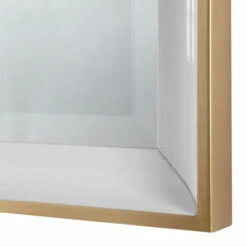 This elegantly refined design has a large gloss white inner frame accented by a petite gold leaf outer frame. The mirror has a 1 inch bevel and may be hung horizontal or vertical.
