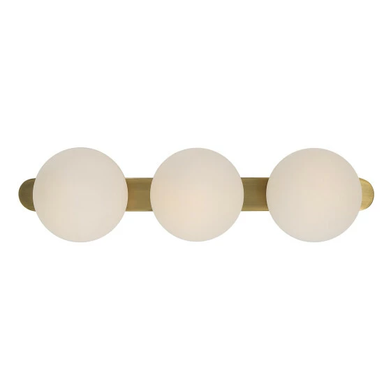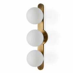 A 3 light sconce designed with mid-century roots finished in a warm antique brass and accented with 5″ matte white opal globes yields a modern take on vintage style. With 3-60 watt max candelabra sockets for G16.5 bulbs.