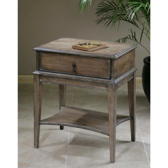 Add the natural feel of the vintage country style to your home with the Hanford accent table. This table features an old styled finish with a rustic wood material for a perfect piece in any home decor.