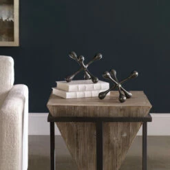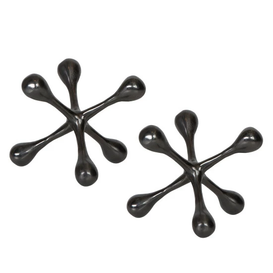 Set of two, cast aluminum decorative objects feature a black nickel finish.