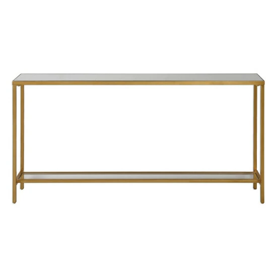 Uttermost’s Console Tables Combine Premium Quality Materials With Unique High-style Design. With The Advanced Product Engineering And Packaging Reinforcement, Uttermost Maintains Some Of The Lowest Damage Rates In The Industry. Each Product Is Designed, Manufactured And Packaged With Shipping In Mind. Classic And Minimalistic, This Narrow Console Table In Iron Is Finished With Lightly Antiqued Gold Leaf, Inset With Mirrored Top, And Gallery Shelf In Clear Glass. Classic And Minimalistic, This Narrow Console Table In Iron Is Finished With Lightly Antiqued Gold Leaf, Inset With Mirrored Top, And Gallery Shelf In Clear Glass.