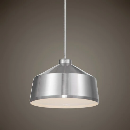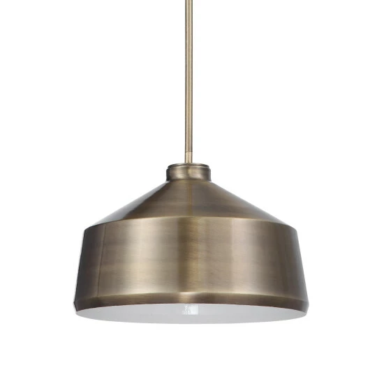 Clean line metal shade 1 lt. pendant featuring multiple finish with a white interior. With 1-60 watt max edison socket and includes 15 feet wire, and 3-12 inches stems and 1-6 inches stem for adjustable installation.