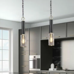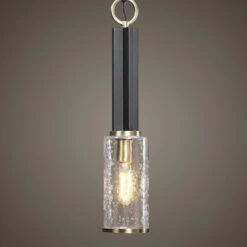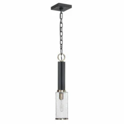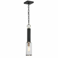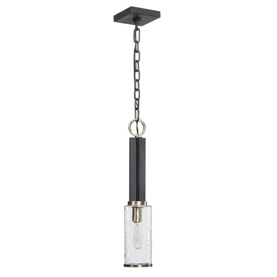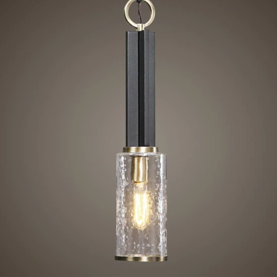 Refined industrial with clean lines on our 1 Lt. mini pendant features a sanded black finish on the I-beam style frame with refined antique brass accents and clear meteor shower glass shade. With 1-60 watt max Edison sockets also includes 5 feet of chain and 12 feet of wire for adjustable installation.