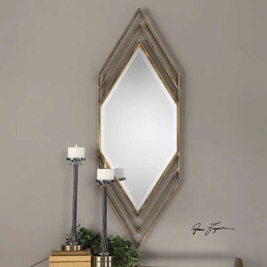 Give your foyer a glamorous touch with this gorgeous wall mirror from Uttermost. Featuring a chevron-inspired design, this wall mirror has an iron frame for strength, and the golden bronze finish provides a classy, luxurious appearance.