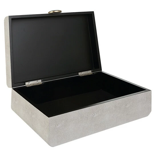 - Shagreen box: 4.5 inches high x 12.875 inches wide x 9 inches deep