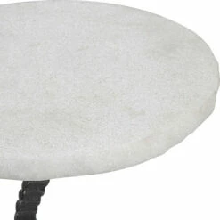 This contemporary drink table is the perfect accent for your favorite book or cocktail. The cast iron base is coiled into unique curves with notched details in a gunmetal finish, paired with a chiseled edge stone top in white that accurately replicates the look of thassos marble.
