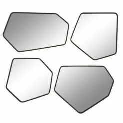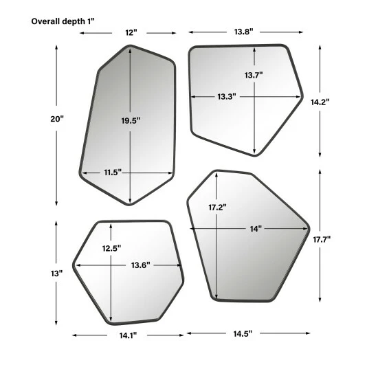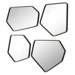 Scandinavian inspired mirrors are organically shaped with petite metal frames finished in satin black. Each mirror may be hung horizontal or vertical.