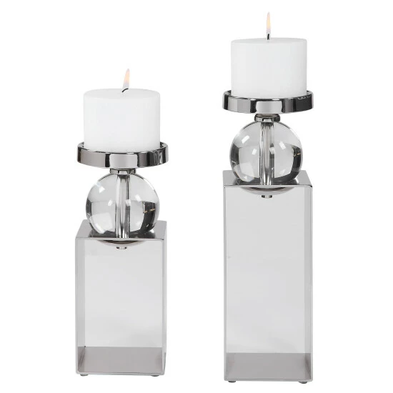 - Set includes: Two (2) candle holders