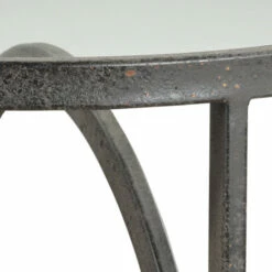 Interlocking loops of chunky hand forged iron finished in a textured aged black with gold highlights. Top is clear glass.