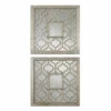 Open up small spaces by hanging this large mirror on a wall. The frame features a modern abstract design dressed up with antique gold for a great transitional look, and the gently beveled reflective surface is ideal for quick touch-ups. Place this mirror across from your favorite decor to balance the room.