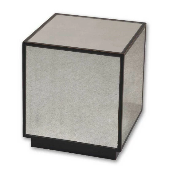 Providing great stability, the solid, sturdy construction of this table makes it as functional as it is beautiful. The sleek, square frame of this table allows it to easily fit into most design configurations. Unlike clear mirror tables, this cube table requires less cleaning as its antique finish camouflages dust and smudge marks.