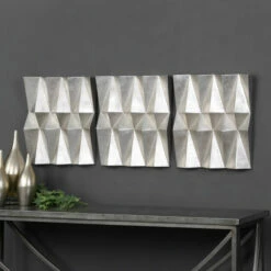 Uttermost’s Wall Panels Combine Premium Quality Materials With Unique High-style Design. With The Advanced Product Engineering And Packaging Reinforcement, Uttermost Maintains Some Of The Lowest Damage Rates In The Industry. Each Product Is Designed, Manufactured And Packaged With Shipping In Mind. Multi-faceted, Three Dimensional Iron Panels Finished In Champagne Silver Leaf. May Be Hung Horizontal Or Vertical. Multi-faceted Three Dimensional Iron Panels Finished In Champagne Silver Leaf.