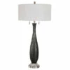 Capture a unique modern aesthetic while illuminating your side table with this Uttermost Molinara lamp. Speckled mercury glass in a broad, rounded rectangular shape creates a stunning and stable base for this lamp, and a tapered hardback linen shade balances out the design and diffuses light warmly.