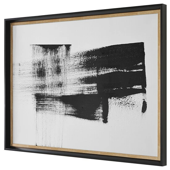 The mystere framed artwork exhibits a stunning black and white composition under glass. The print is accentuated by a black frame with an aged gold inner lip. May be hung horizontal or vertical. Artwork by christian klingeler.