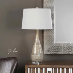Uttermost’s Lamps Combine Premium Quality Materials With Unique High-style Design. With The Advanced Product Engineering And Packaging Reinforcement, Uttermost Maintains Some Of The Lowest Damage Rates In The Industry. Each Product Is Designed, Manufactured And Packaged With Shipping In Mind. Embossed Ceramic Finished In A Light Taupe Glaze Accented With Plated Brushed Nickel Metal Details And A Thick Crystal Foot. The Tapered Round Hardback Shade Is A Light Gray Linen Fabric. Due To The Nature Of Fired Glazes On Ceramic Lamps, Finishes Will V Embossed Ceramic Finished In A Light Taupe Glaze Accented With Plated Brushed Nickel Metal Details And A Thick Crystal Foot.