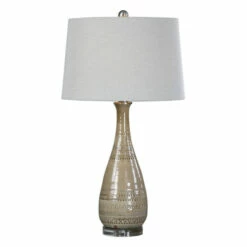 Uttermost’s Lamps Combine Premium Quality Materials With Unique High-style Design. With The Advanced Product Engineering And Packaging Reinforcement, Uttermost Maintains Some Of The Lowest Damage Rates In The Industry. Each Product Is Designed, Manufactured And Packaged With Shipping In Mind. Embossed Ceramic Finished In A Light Taupe Glaze Accented With Plated Brushed Nickel Metal Details And A Thick Crystal Foot. The Tapered Round Hardback Shade Is A Light Gray Linen Fabric. Due To The Nature Of Fired Glazes On Ceramic Lamps, Finishes Will V Embossed Ceramic Finished In A Light Taupe Glaze Accented With Plated Brushed Nickel Metal Details And A Thick Crystal Foot.