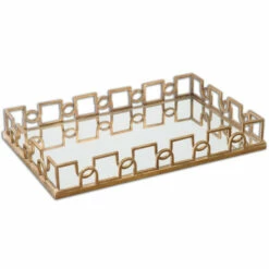 Make entertaining an elegant affair with this dazzling brass mirrored serving tray. The intriguing geometry of the brass frame catches in the reflection of the mirror for a refined look straight out of a more opulent era. Forged iron holds strong through years of serving drinks and delighting guests with perfect canapes and delicious hors d’oeuvres, or as a gorgeous accent piece for display.