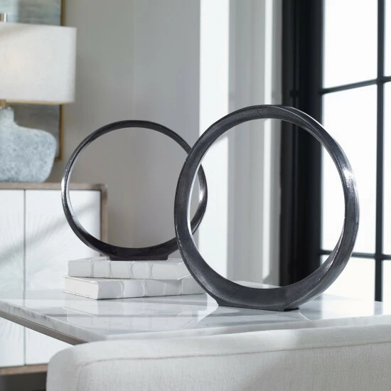 Aluminum accessories showcase a contemporary look with streamlined curves finished in black nickel.