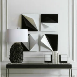 Modern and sophisticated yet fun and trendy, these iron wall panels feature matte black and white finishes creating unique visual contrast. Each panel may be hung three ways, allowing for endless display options.