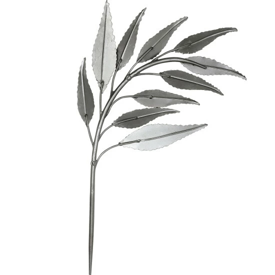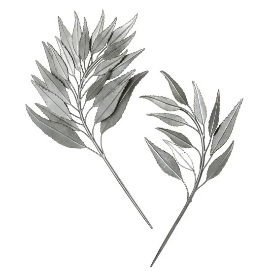 Hand crafted from solid iron, these metal branches feature individually cut leaves with crude gold tipped edges, finished in lightly distressed silver leaf.